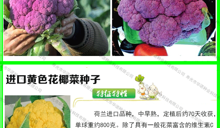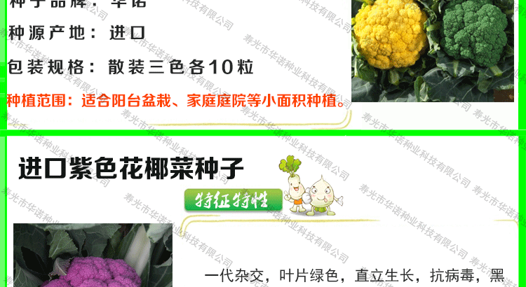 商品名称:进口有机三色菜花种子紫菜花黄花菜花椰菜西兰花阳台蔬菜种子四季