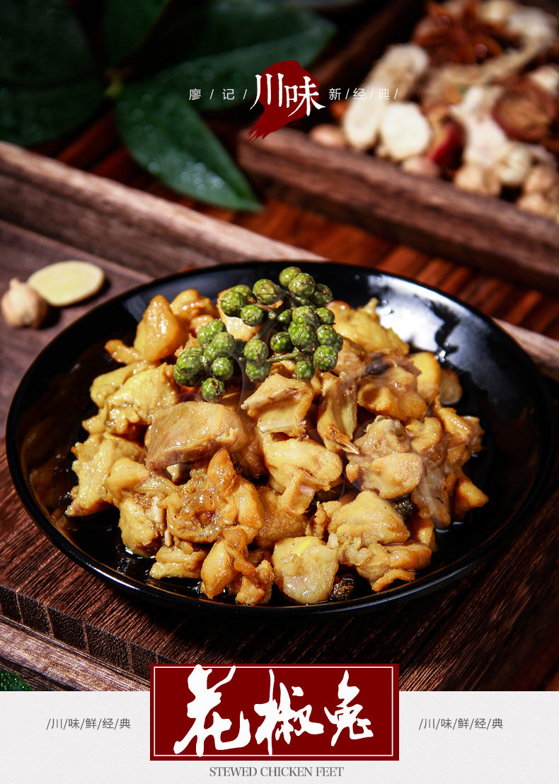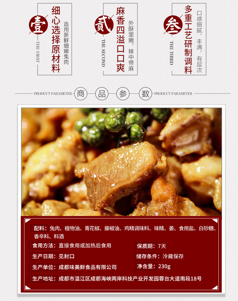 商品名称:廖记青花椒兔藤椒兔丁四川小吃花椒麻兔肉锁鲜装即食熟食成都零食
