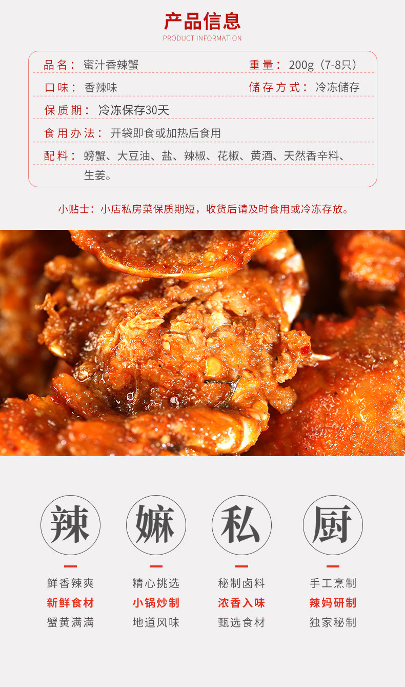 商品名称:闲嚼秘制香辣蟹即食麻辣小海鲜零食鲜活梭子蟹现做熟食花蟹切蟹