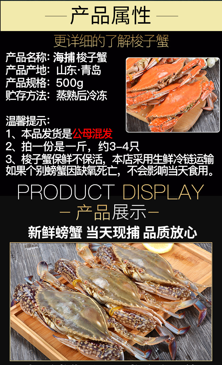 商品名称:梭子蟹鲜活螃蟹特大海蟹海鲜水产非舟山梭子蟹大飞蟹花蟹白蟹