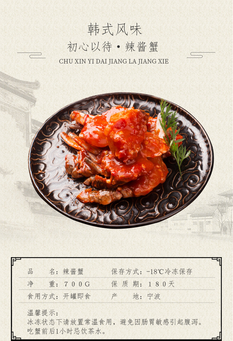 商品名称:酱蟹香辣韩国辣酱生蟹腌制梭子蟹海鲜即食呛蟹生拌花蟹韩式酱螃蟹