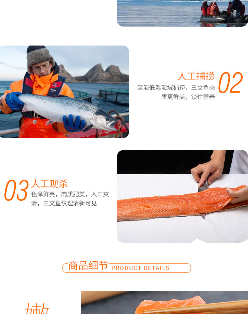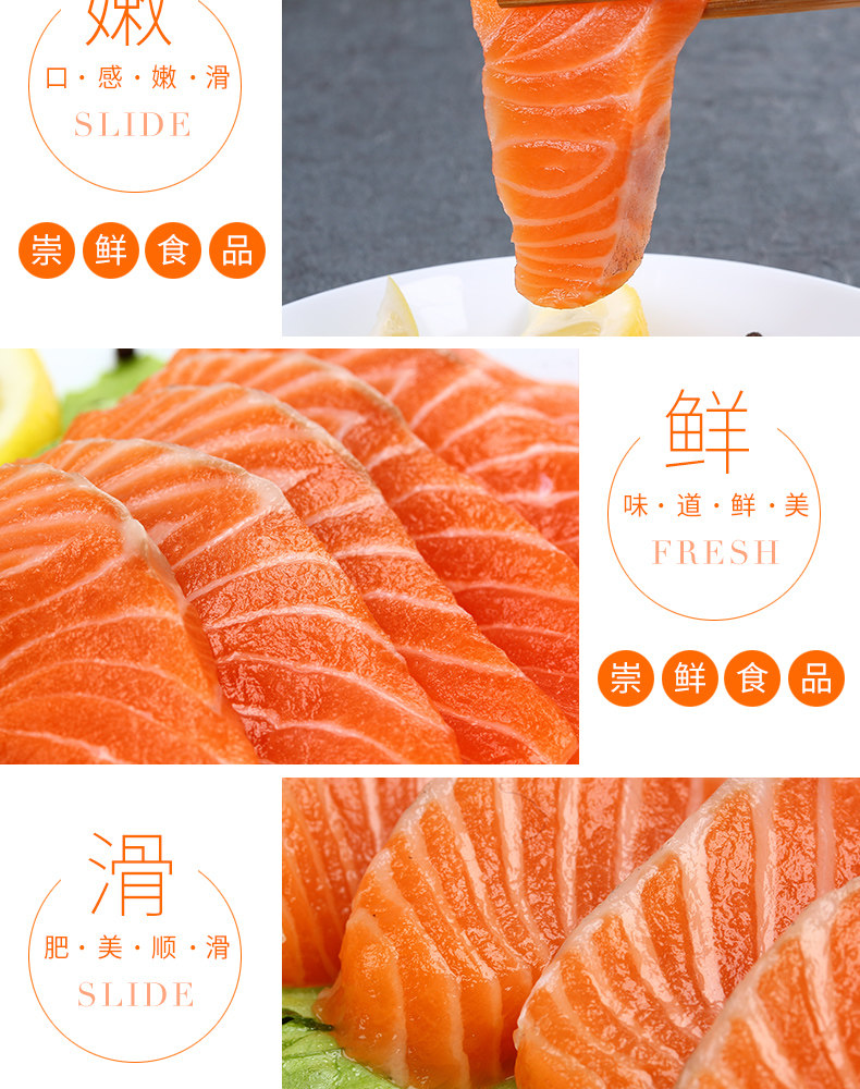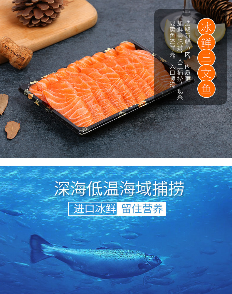 商品名称:当天整条现杀生鱼片即食寿司三文鱼新鲜400克