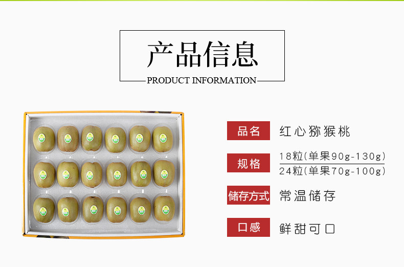 商品名称:四川蒲江红心猕猴桃18粒24粒奇异果大果礼盒装当季新鲜孕妇水果