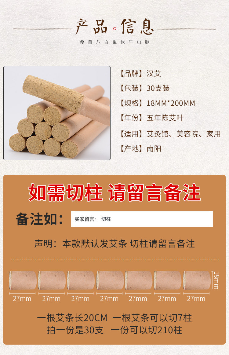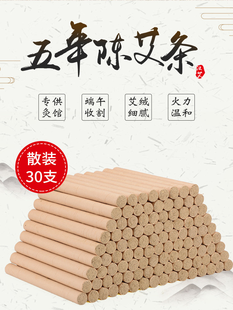 商品名称:30支艾条消毒艾柱五年陈南阳十年陈纯艾无烟家用叶熏正品清艾灸条