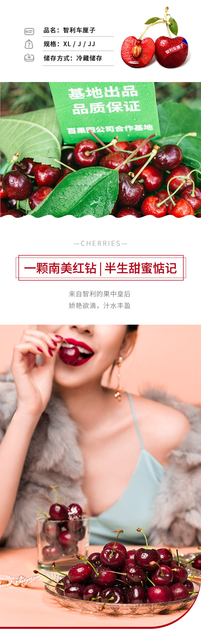 商品名称:JJ级智利车厘子2.5kg 大樱桃基地直采新鲜水果