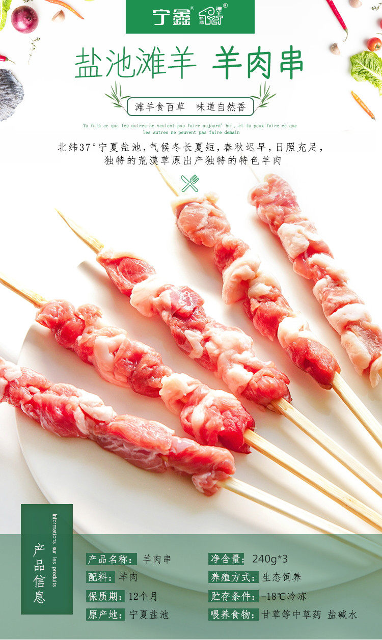 商品名称:盐池滩羊肉串240gx3新鲜速冻半成品烧烤宁夏羊肉滩羊肉